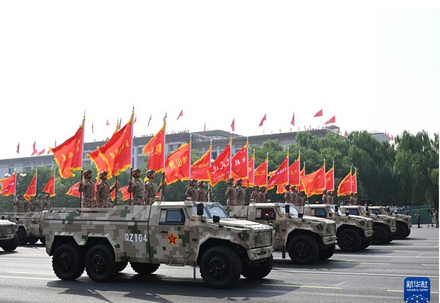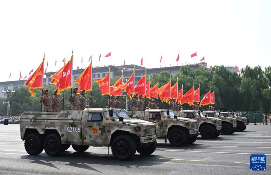 铁流滚滚,战旗猎猎。3日上午,80面抗战英模部队荣誉旗帜组成的战旗方队,承载着历史荣光,接受祖国和人民检阅。接受检阅的80面战旗,从全军各部队遴选确定,来自东、南、西、北、中五大战区,涵盖陆、海、空军和武警部队,由团、营、连三级功勋荣誉单位代表组成。战旗方队在2019年庆祝新中国成立70周年阅兵中首次亮相,这是第二次成建制组成战旗方队参加阅兵。