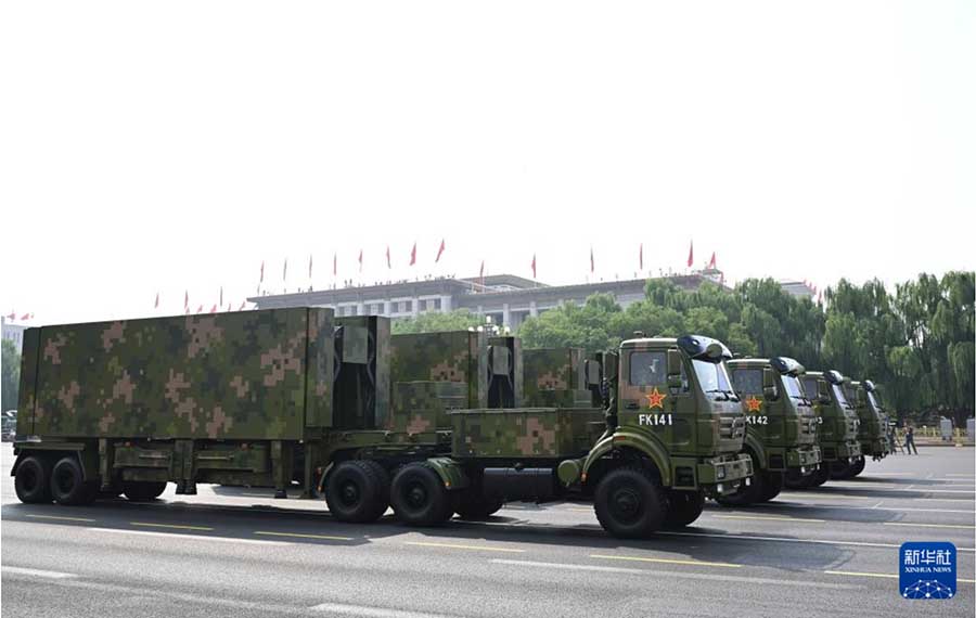 洞悉战场风云,抢占制胜先机。预警探测方队3日上午通过天安门广场,接受祖国和人民检阅。受阅的4型装备都是国产新一代高机动雷达,呈现探测范围广、作战职能更多、机动能力更强等特点,远近衔接、协同组网,技术体制先进,探测模式多样,能够探测隐身飞机、弹道导弹等目标,是守望国家空天安全的“千里眼”。
